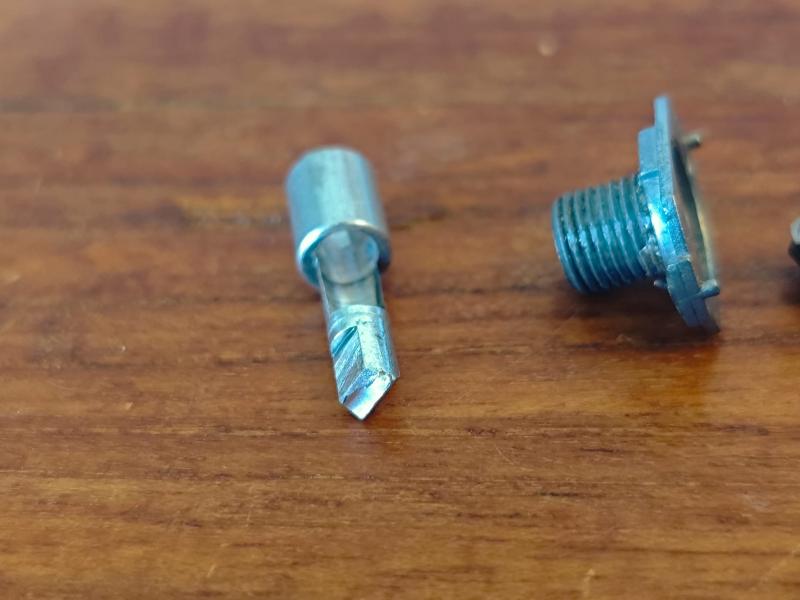 I decided to sacrifice one pot to the teardown gods.I wonder how well the aluminium socket will hold up, if it will oxidise over time. I'm also curious to find out what the connection is like while the knob is rotated. Presumably the shaft and the body have some grease between them, does this change the resistance while it's turned? ![]() You can clearly see that the central shaft is fully isolated from the wiper. ![]() ![]() As you can see, the inner shaft is around 4mm and with the badly centered drill I got kind of lucky with just enough metal to keep the shaft intact. This might also explain the readings I got as the bananajack springs were making direct contact with the housing for at least half of the hole. And you are correct about the grease, any amount of wiggle or play will result in a intermittent connection but because of the large contact patch between the shaft and the barrel I suspect it won't be much of a problem. The aluminium on these ALPHA branded pots seems of very low quality so corrosion might also become an issue. Unfortunately this means that in practice the 4mm hole in the top of the pot can only be around 8mm deep for this style of pot which isn't enough for proper engagement. Searching for longer shaft pots and drilling a perfectly centered hole might defeat the purpose of this being a simpler solution :/. I still really like the idea and I'm sure the issues I mentioned can be fixed. Your other solution with the linkage would also be greatly simplified when using banana sockets so I might look into that some more. Either way I will work on it some more and try to incorporate it in some modules to test if the idea is valid. You can find more info on the mosaic modular system Im designing here: https://mosaicsynth.com/index.php/system-info/ If you have any questions, feel free to contact me here or through my website. ------------- |